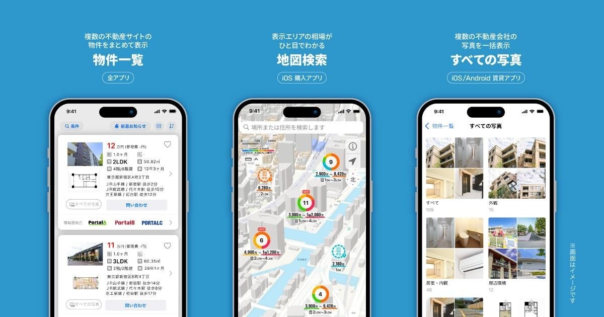 またユーザーの負担となる重複物件の排除をはじめ、相場を把握しやすい地図検索や多彩なプッシュ通知機能など、徹底してユーザー起点の“使いやすさ”を追求しています。