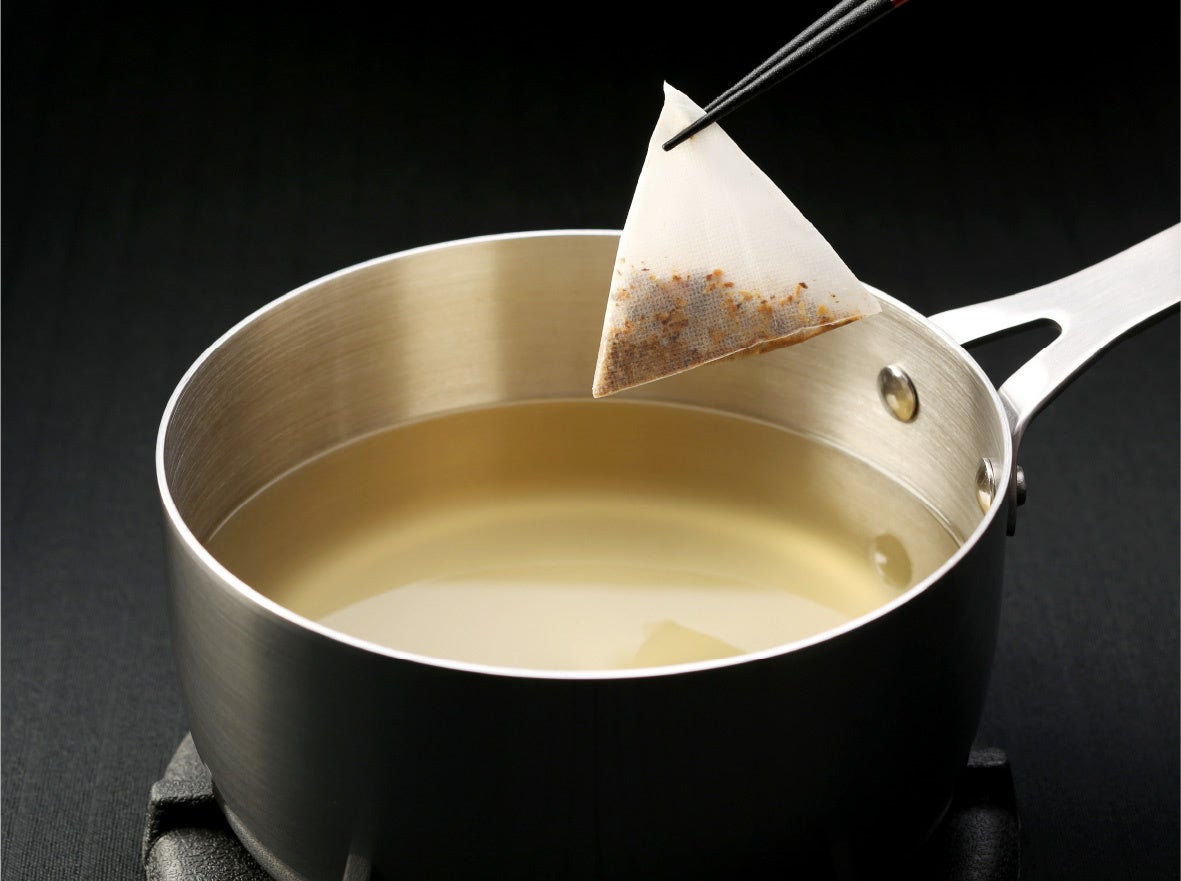 「たいだし」は、鰹節と昆布の旨味に、鯛煮干しの甘み、焼きあご(とびうお)の深みを加え、上品でまろやかな味わいに仕上げています。お吸い物、味噌汁にもぴったりのおだしです。