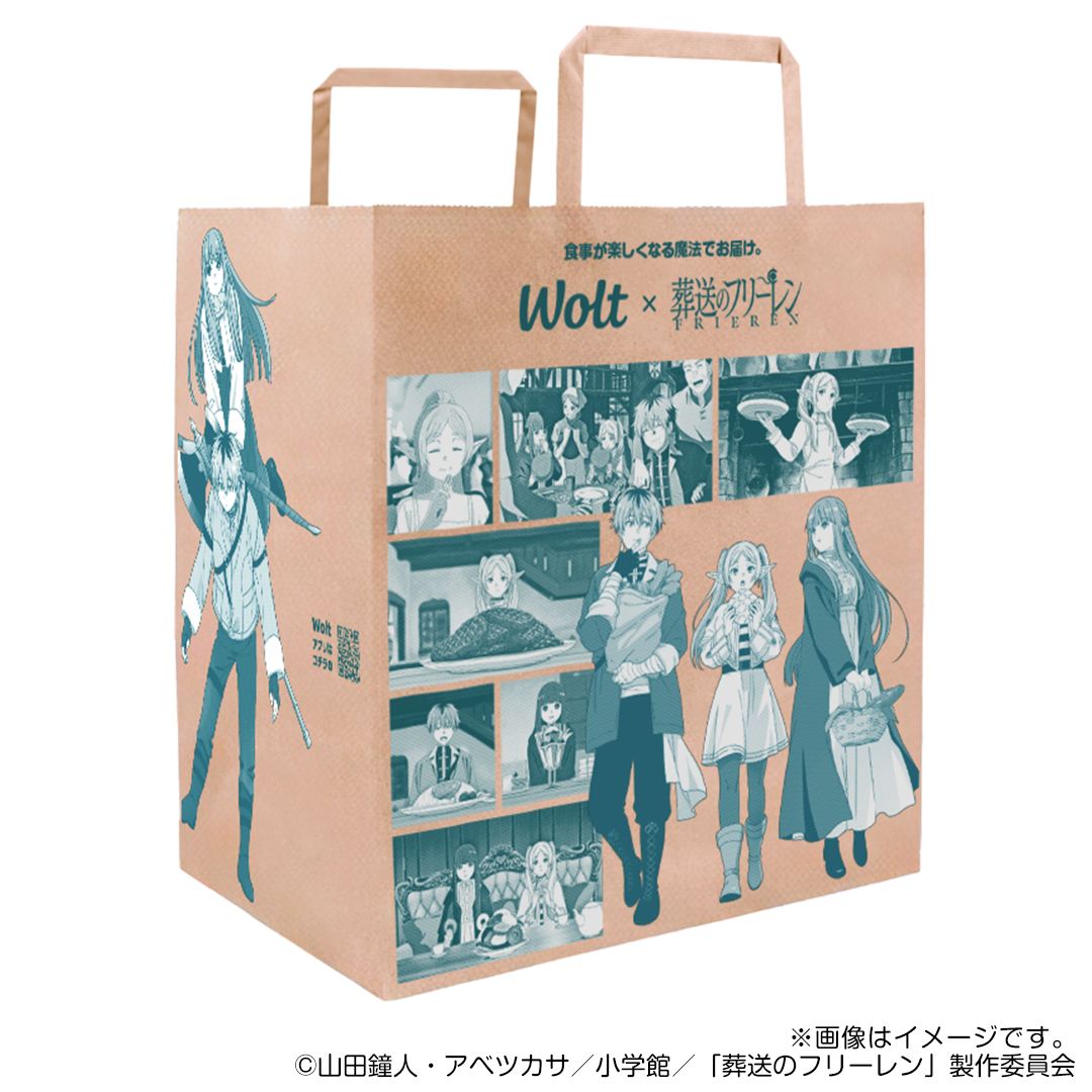 期間中に対象店舗にてご注文いただくと、「Wolt x 葬送のフリーレン」の限定紙袋でお届けします。対象店舗はアプリのバナーからご確認いただけます。
