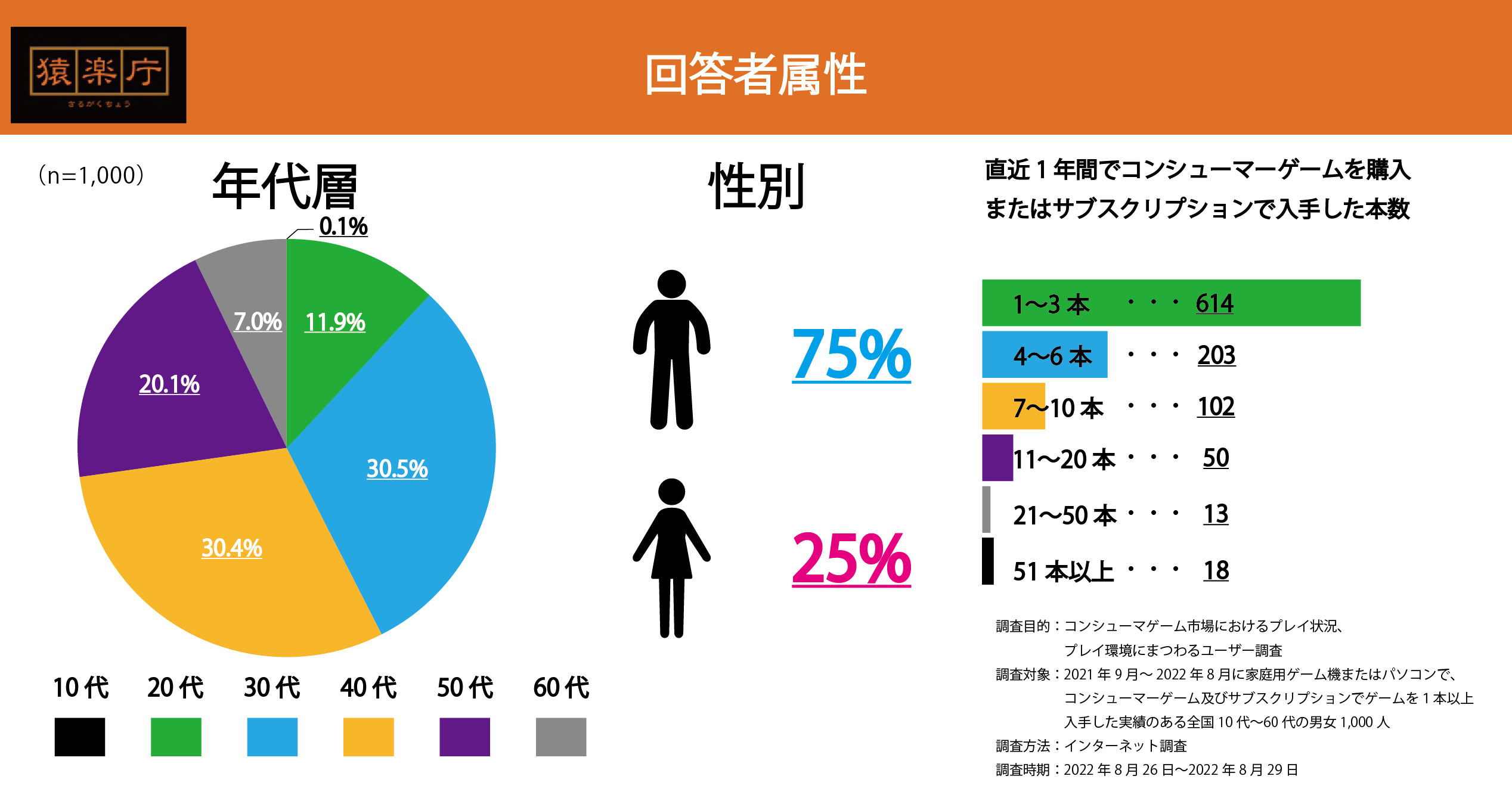 調査対象:2021年9月~2022年8月に家庭用ゲーム機またはパソコンで、コンシューマーゲーム及びサブスクリプションでゲームを1本以上入手した実績のある全国10代~60代の男女1000人