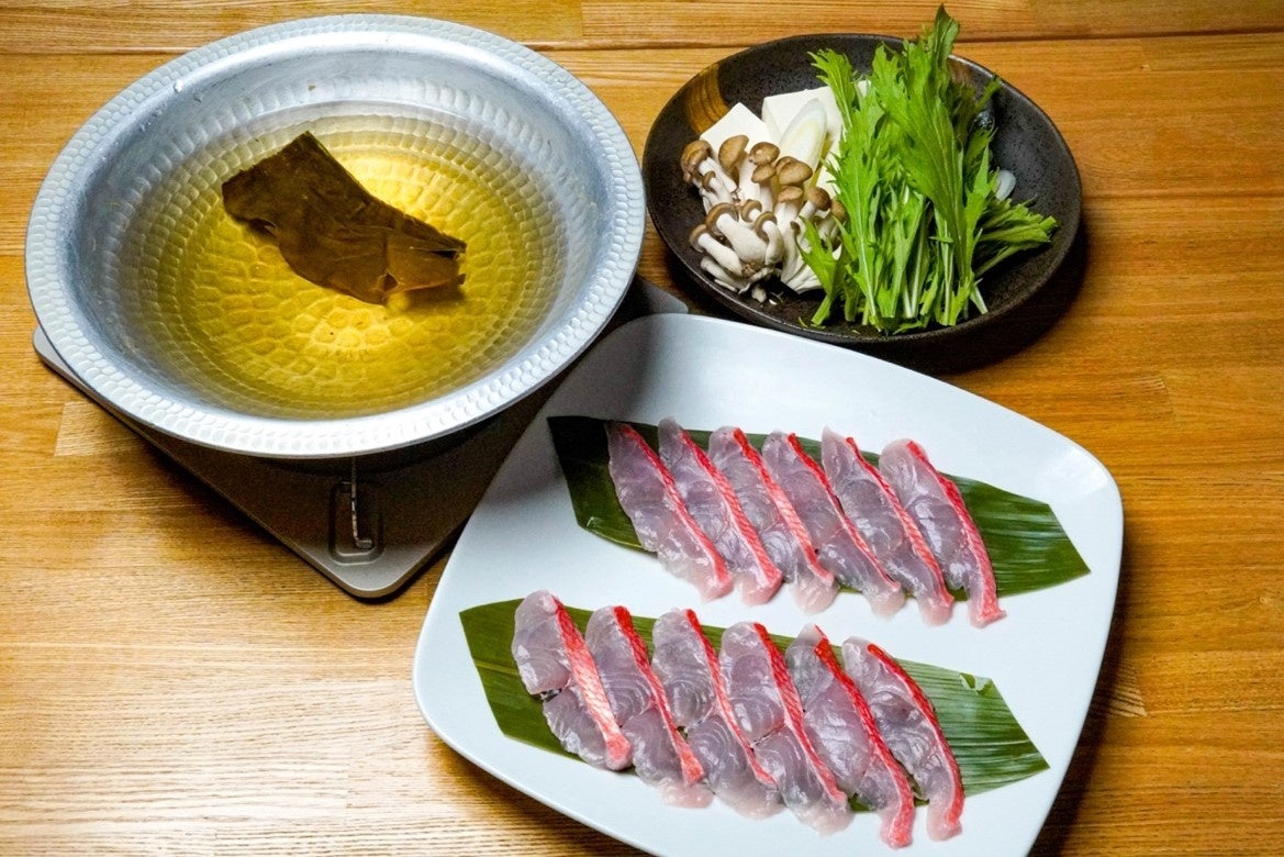 黒潮コース・鮮魚屋コースに含まれる「特製ブイヤベース」は、冷製仕立てにすることも、お好みによって「金目鯛のしゃぶしゃぶ」(追加料金500円)に変更することも可能です。