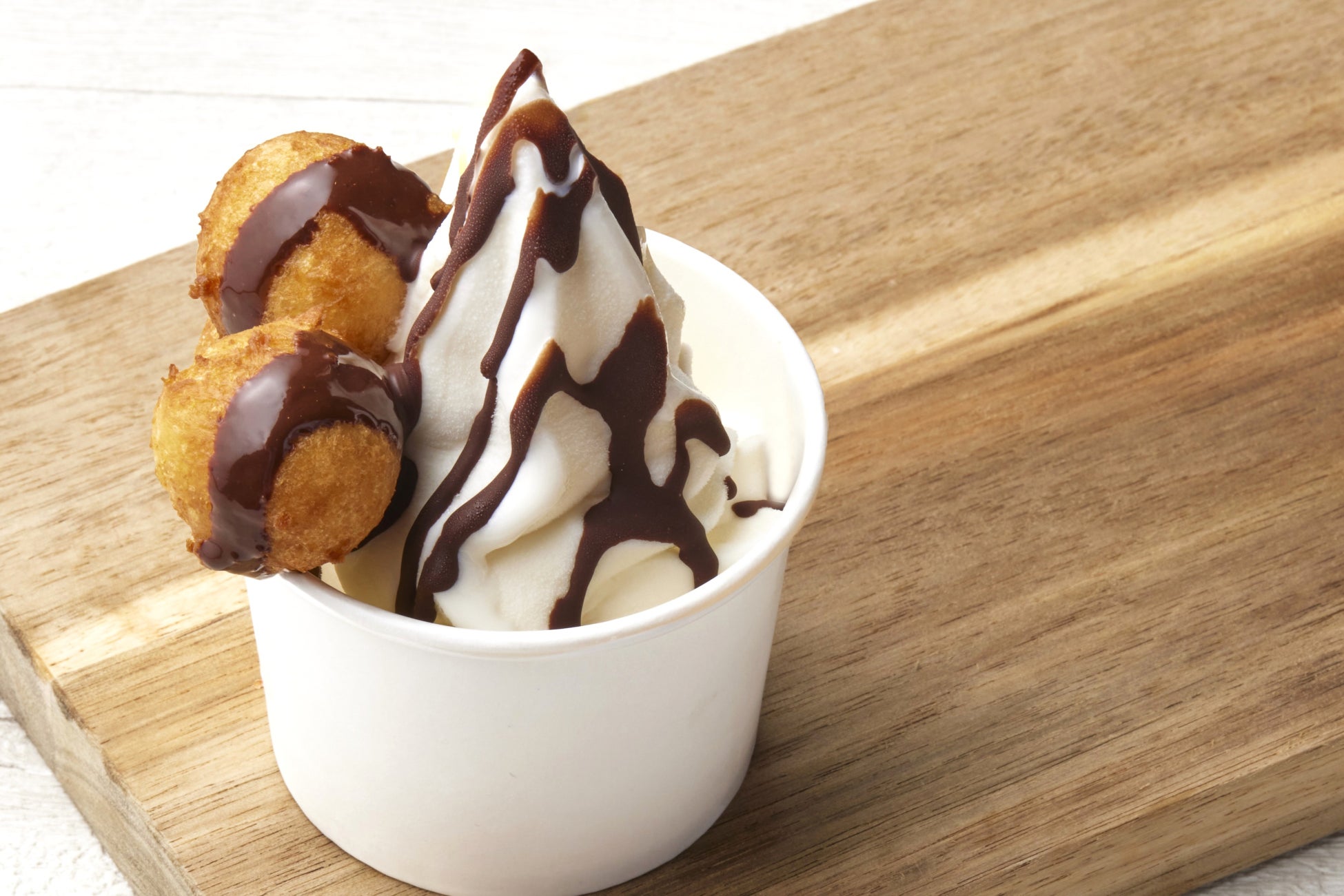 (うどーなつ2個、ソフトクリーム、お好きなソース1個)