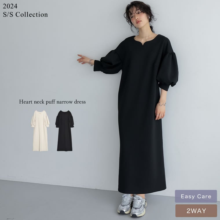 商品名: [低身長サイズ有]2WAYダンボールハートネックパフスリーブナローワンピース