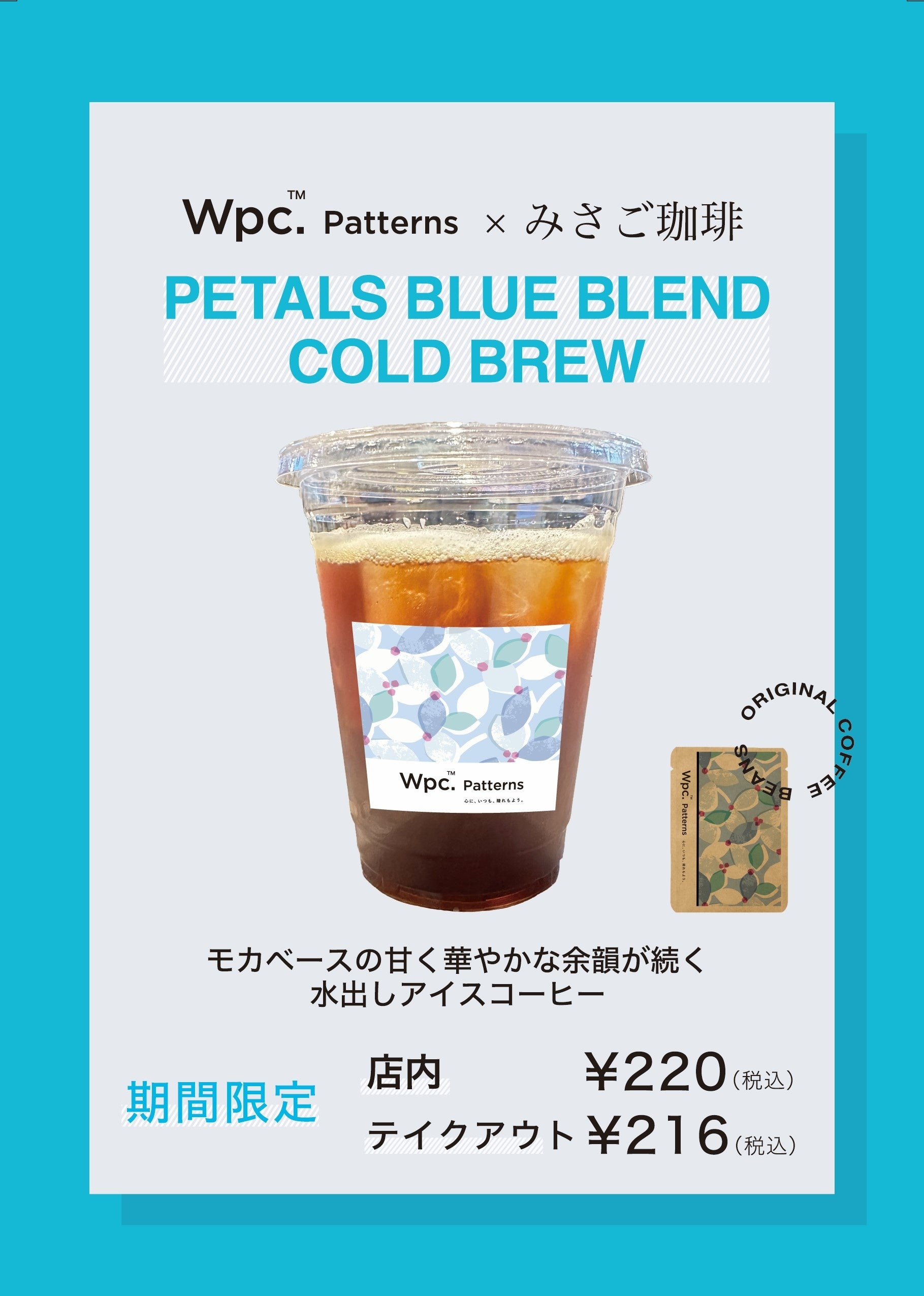 カップには、Wpc. Patternsに2023年に初登場した花びらをモチーフにしたやさしく涼やかなデザイン「ペタルブルー」など全3種いずれかのステッカー付き。またデザインのイメージに合わせて特別にブレンドされた、モカベースの甘く華やかな余韻が感じられるオリジナルフレーバーが楽しめる一杯です。