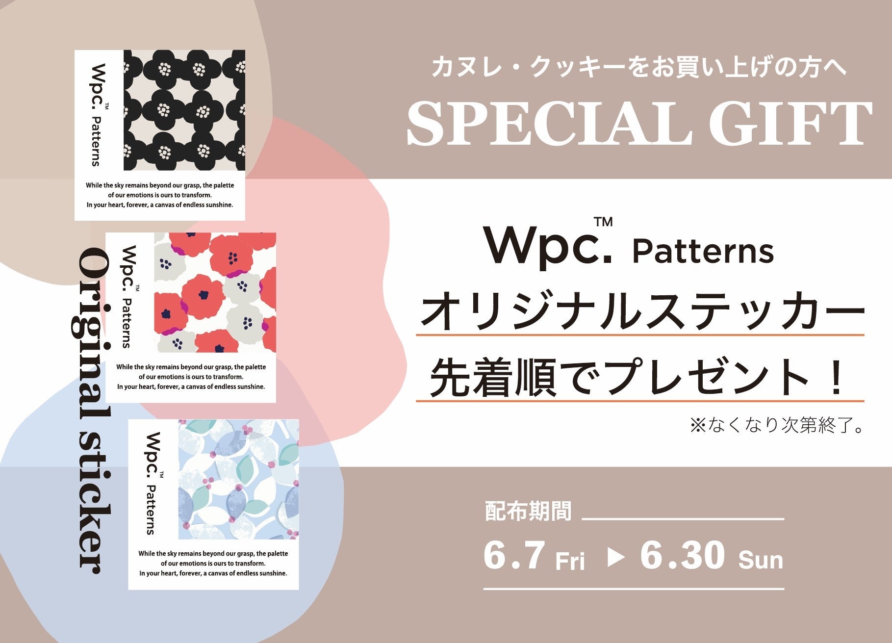 キッチン&マーケット内のカヌレまたはクッキーをご購入の方限定で、Wpc. Patternsオリジナルのステッカーを先着順にプレゼント!