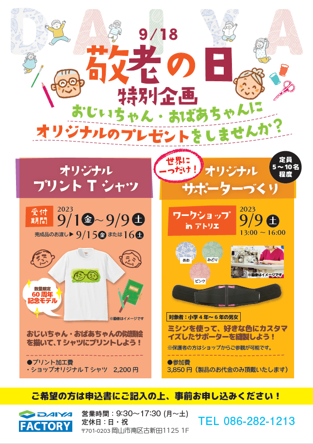 【敬老の日特別企画】子ども向けワークショップイベント開催!オリジナルのサポーターやTシャツを作ってプレゼントできる