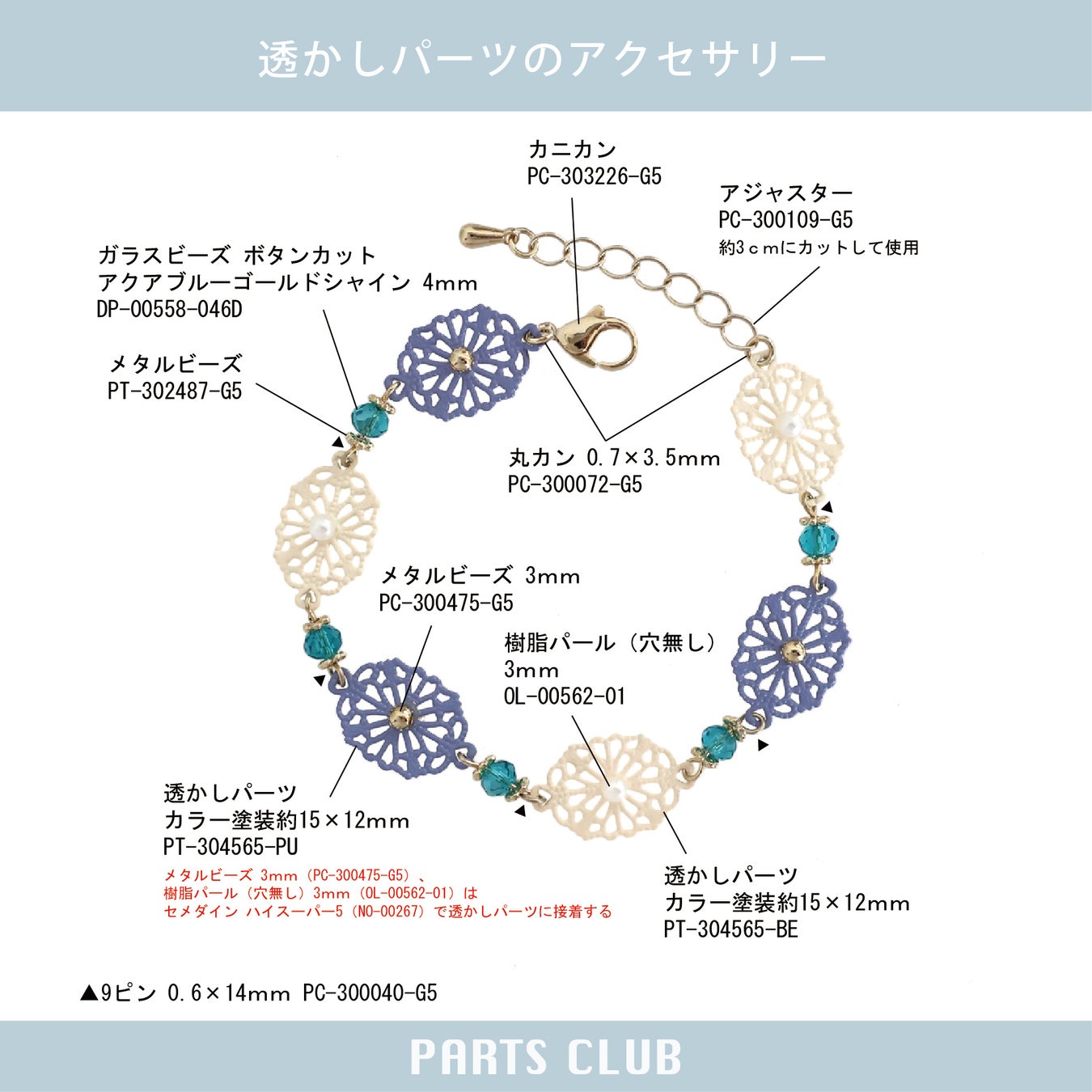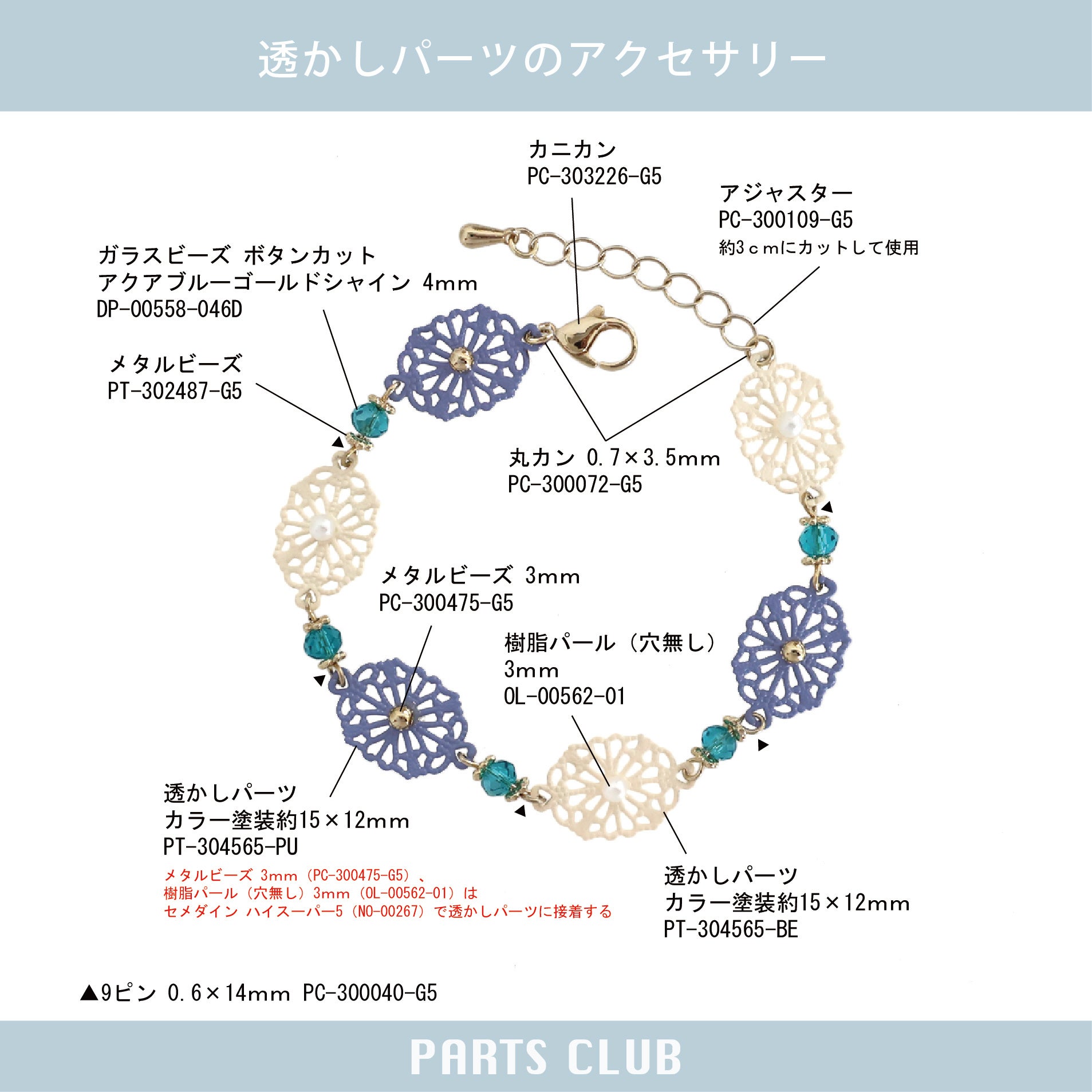 PARTS CLUBのビーズやアクセサリーパーツで作れる、手作りアクセサリーのレシピを紹介しています。
