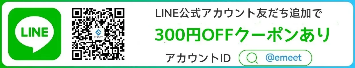 EMEET公式LINEアカウント友だちを追加すると、300円OFF併用可能クーポンをゲット!