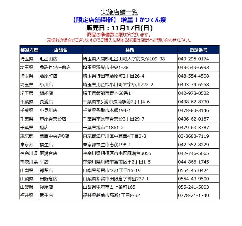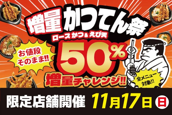 小僧寿しが運営するかつ丼と天丼の【かつてん】、11月17日(日)『増量かつてん祭』を限定店舗にて開催!