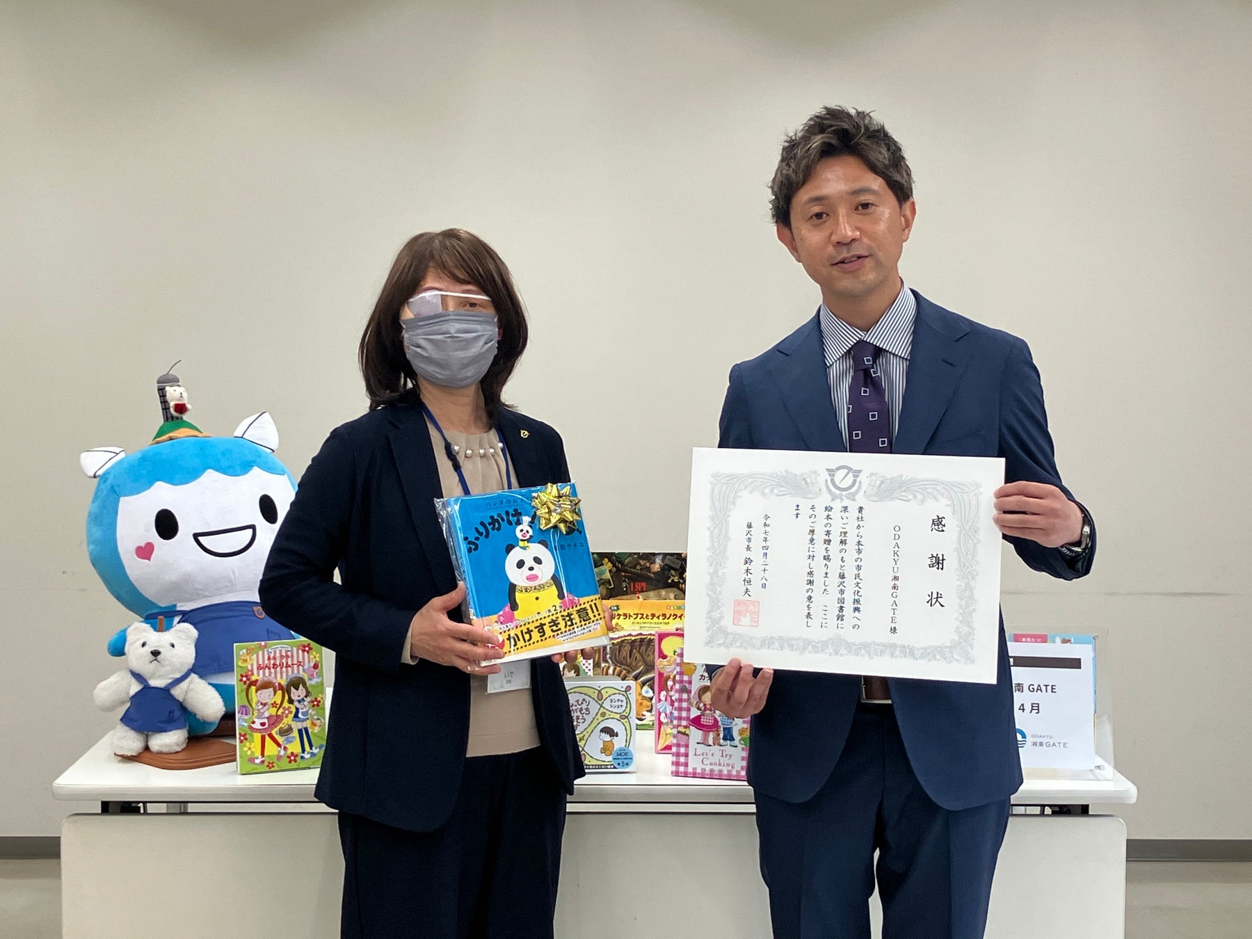 「子どもたちに人気の本を中心に寄贈いただきありがとうございます。前回寄贈いただいた絵本も大人気で、常に貸出中の状態です。ODAKYU湘南GATE内の藤沢市南市民図書館をはじめ、総合市民図書館でも引き続き地域連携の取り組みをさせていただければ幸いです。」