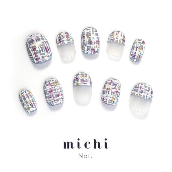 パープルの色合いが綺麗なツイードネイル。様々な色でデザインされたツイード風アートは高級感が感じられ、シンプルな洋服に彩りを与えてくれます。マット仕上げの為、よりツイードの布っぽさを感じられるネイルです。