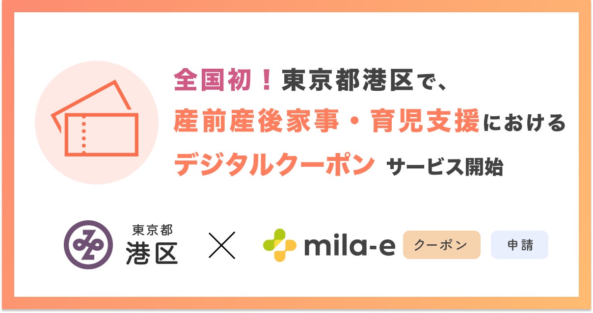 自治体向けサービスを開発する株式会社ミラボ(本社:東京都千代田区、代表取締役:谷川一也、以下「ミラボ」)は、デジタルクーポンサービス「mila-e(ミライー) クーポン」、自治体窓口DXサービス「mila-e 申請」の東京都港区への提供が決定し、2025年10月1日より全国初(*)となる産前産後家事・育児支援サービスにおけるデジタルクーポンの運用を開始します。
