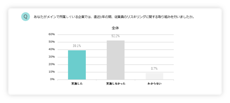✓直近1年間で、約40%の企業がリスキリングを実施 大企業が先行した結果に