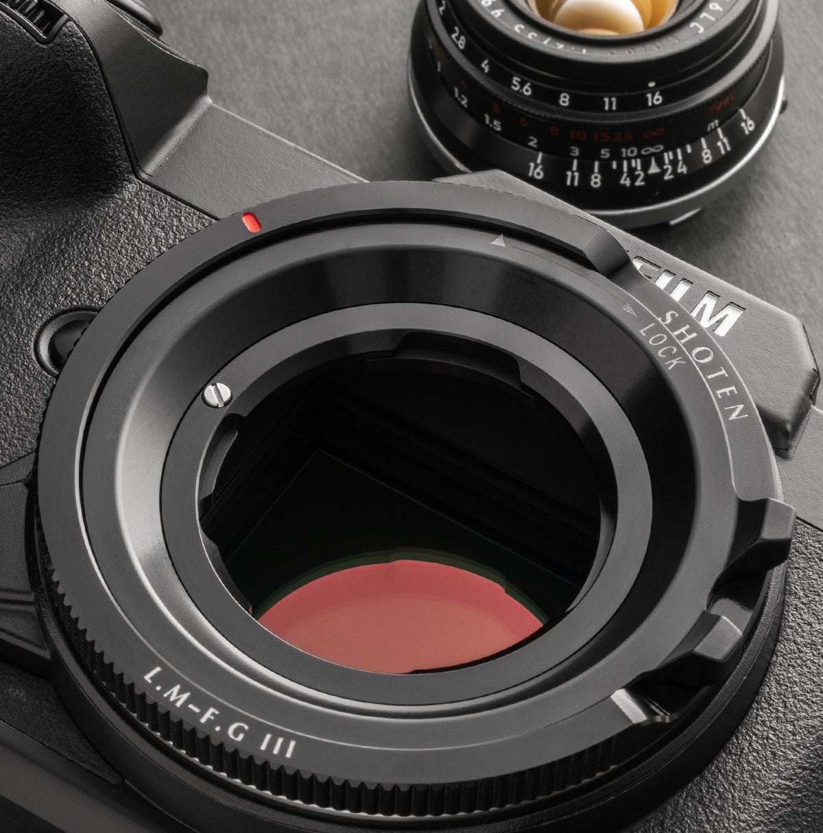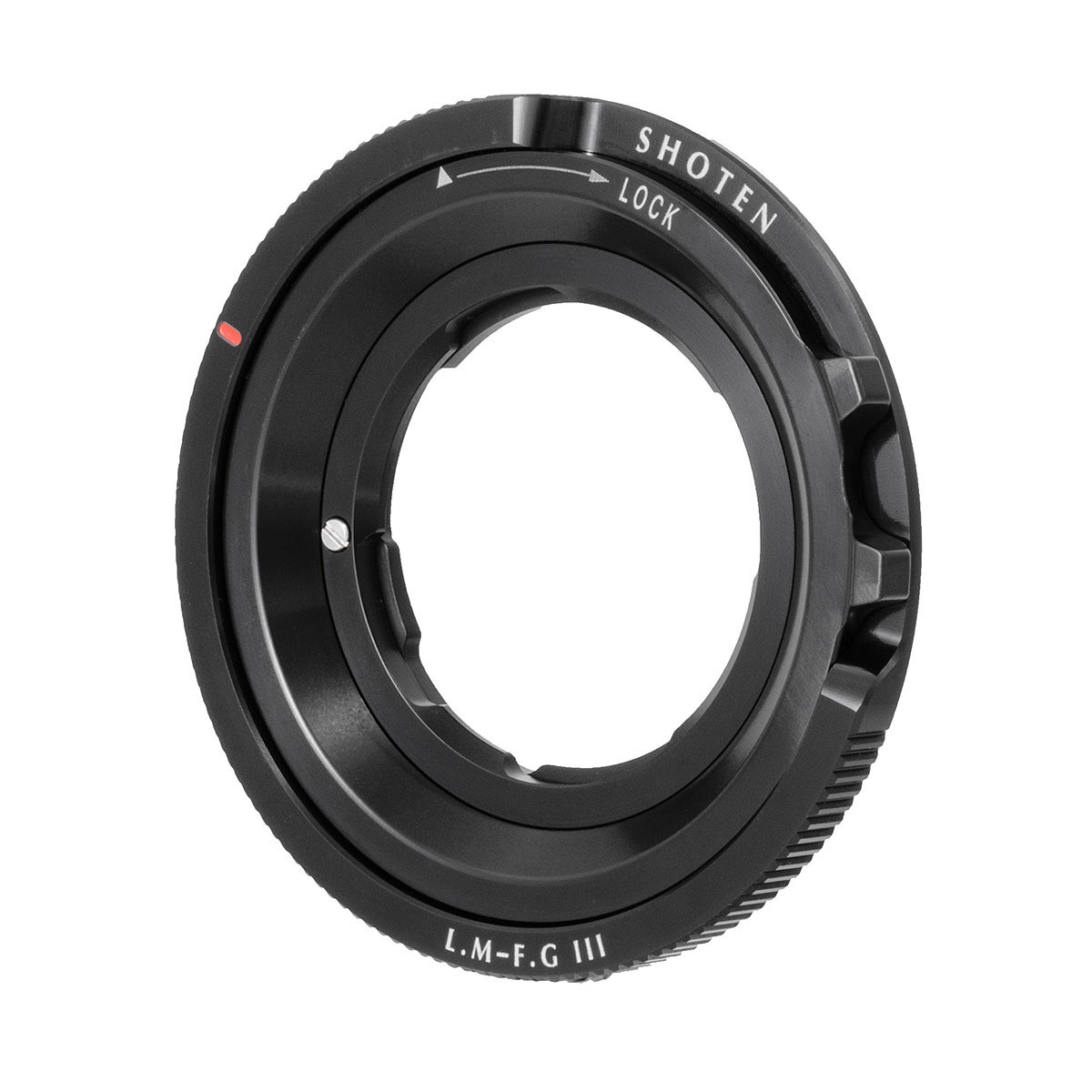 SHOTEN(ショウテン)LM-FG III は、ライカMマウントレンズを富士フイルムGマウントのカメラで使用するためのマウント変換アダプターです。シネマ用レンズマウントのように締め付けて固定する新設計のロック機構を採用、レンズをガタつきなく固定し容易な着脱を実現しました。