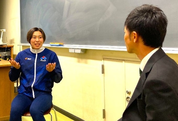 技に対する想いについて社会人アスリートの目線で語りました。人財採用部長からはスポーツを通して磨く人間力が社会で活躍する上でも重要であることを伝え、これからキャリアを築いていく学生たちにエールを送りました。