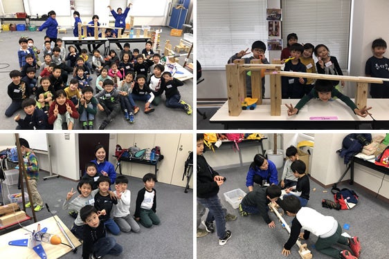 ピタゴラ装置を完成させるまでに、たくさんの試行錯誤を経験します。その過程で、課題を解決していく粘り強さが身につきます。何度も調整してピタゴラ装置が完成した時は、お子様達から大歓声が上がります!苦労して作るという経験があるからこそ、お子様達の喜びも大きくなります。