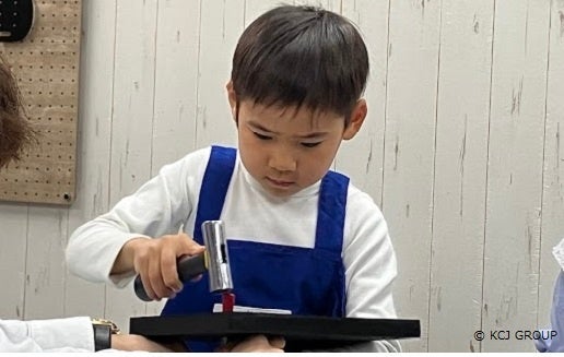 また、今回初の取り組みとして、期間中の土・日曜日限定(計6日間)で「オリジナルネームタグ ワークショップ」を同時開催いたします。こども達は、ランドセルの錠前(ロック)に使用される牛革製のツマミを使い、専用の機械でイニシャルを刻印し、鋲を打ってオリジナルのネームタグを作る体験ができます。