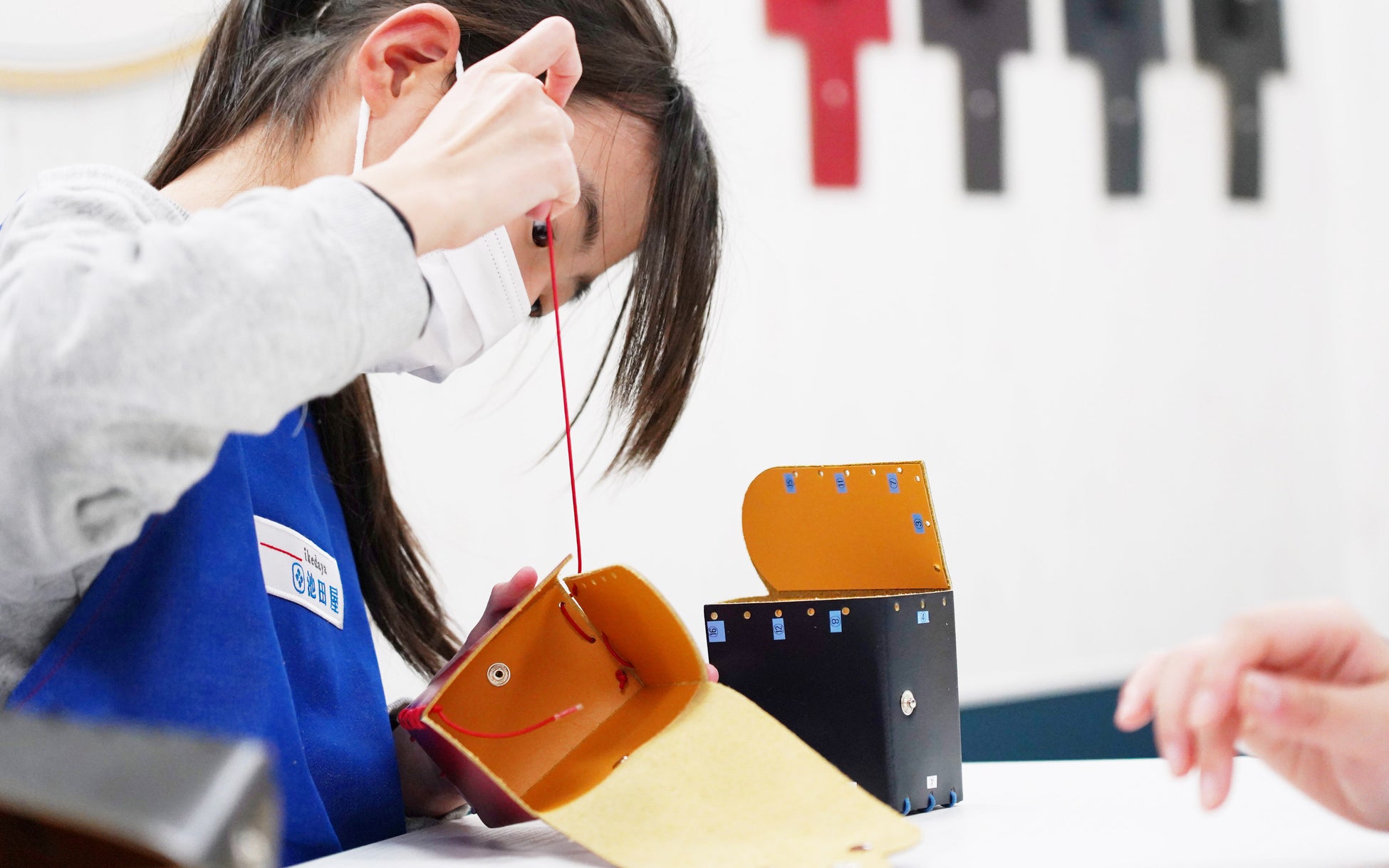 昨年、本パビリオンを体験したこども達からは、「職人さんと同じ道具を使って作れて嬉しい」「昨年とても楽しかったので、今年は弟と一緒に体験しました」などの声が集まり、ものづくりの奥深さに触れていただく機会となりました。今回も引き続き、こども達が「ランドセル職人」として、ランドセルに込められた日本のものづくりの歴史や技術、思いを学び、職人と同じ道具を使って約1/10サイズのミニランドセルを作ります。
