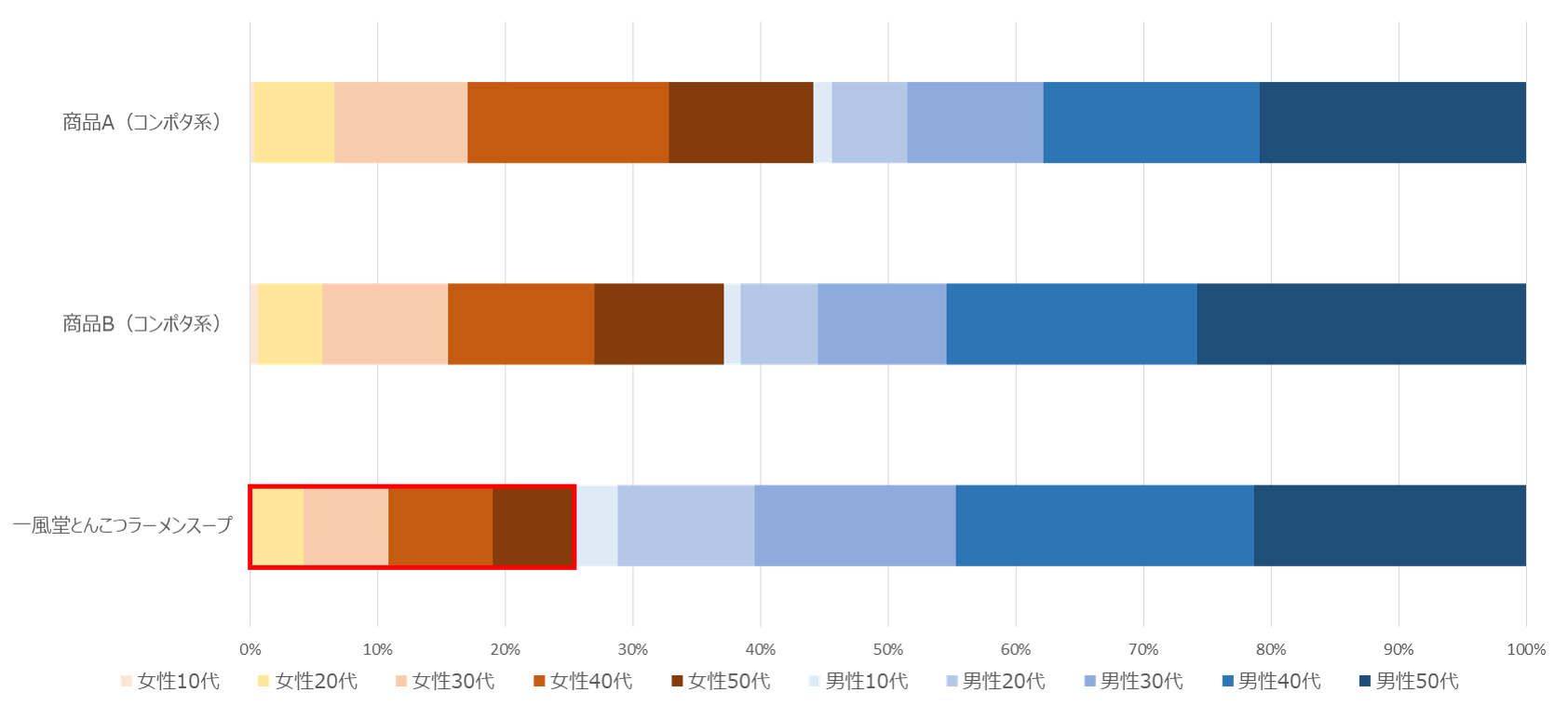 「とんこつスープ」は、購入者の75%が男性。「クリームシチュー」は女性にとってのコーンポタージュ以外の選択肢となることを狙っています。