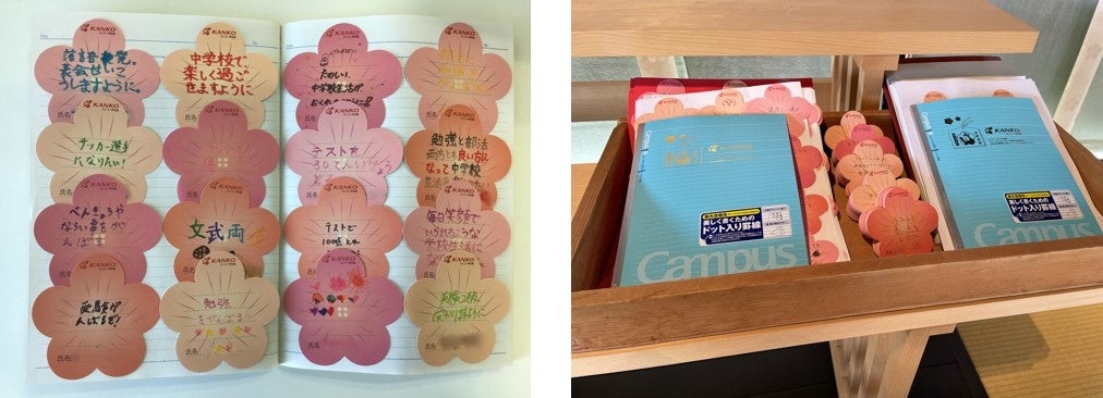 カンコー学生服は、2013年より「菅公学生服の日」制定を記念してこれから新しい人生に向かって進んでいく子どもたちの夢を応援するため「~飛び梅に願いをこめて~ お願い梅ボード」の実施を続けています。