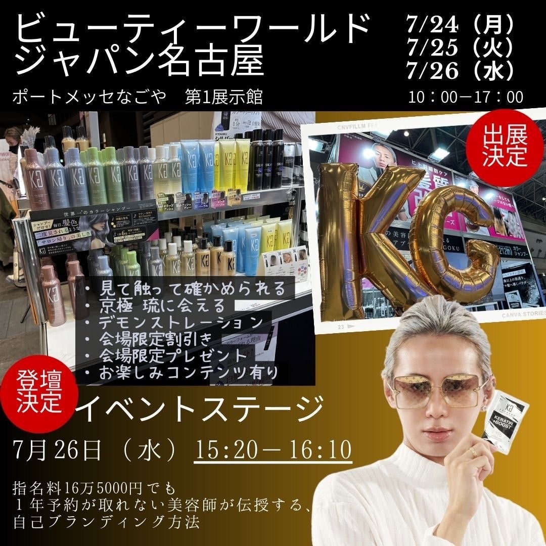 2023年7月24日~26日の3日間でされます、美容の祭典「ビューティーワールド ジャパン 名古屋」へ、株式会社kyogoku「KYOGOKU PROFESSIONAL」も出店させていただく事となり、ステージにも登壇させていただく事となりました。
