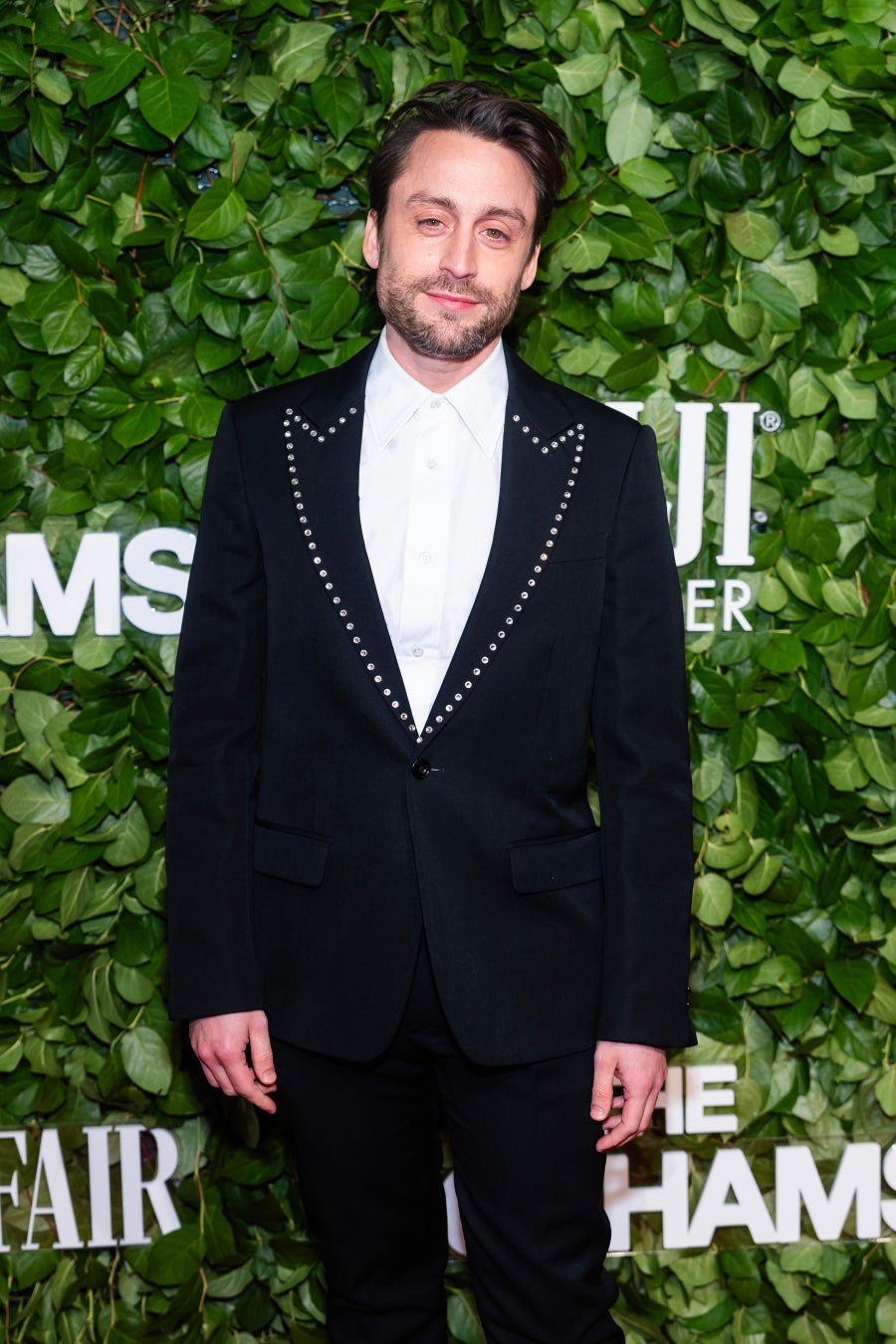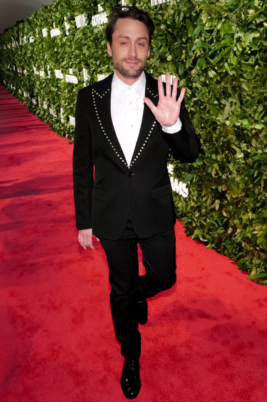 助演俳優賞にノミネートされたキーラン・カルキンは、2025年春夏プレコレクションより、ブラックウールバラセア スタッズラペル シングルブレストジャケット、ホワイトコットンポプリン シャツ、ブラックウールバラセア トラウザーを着用しています。