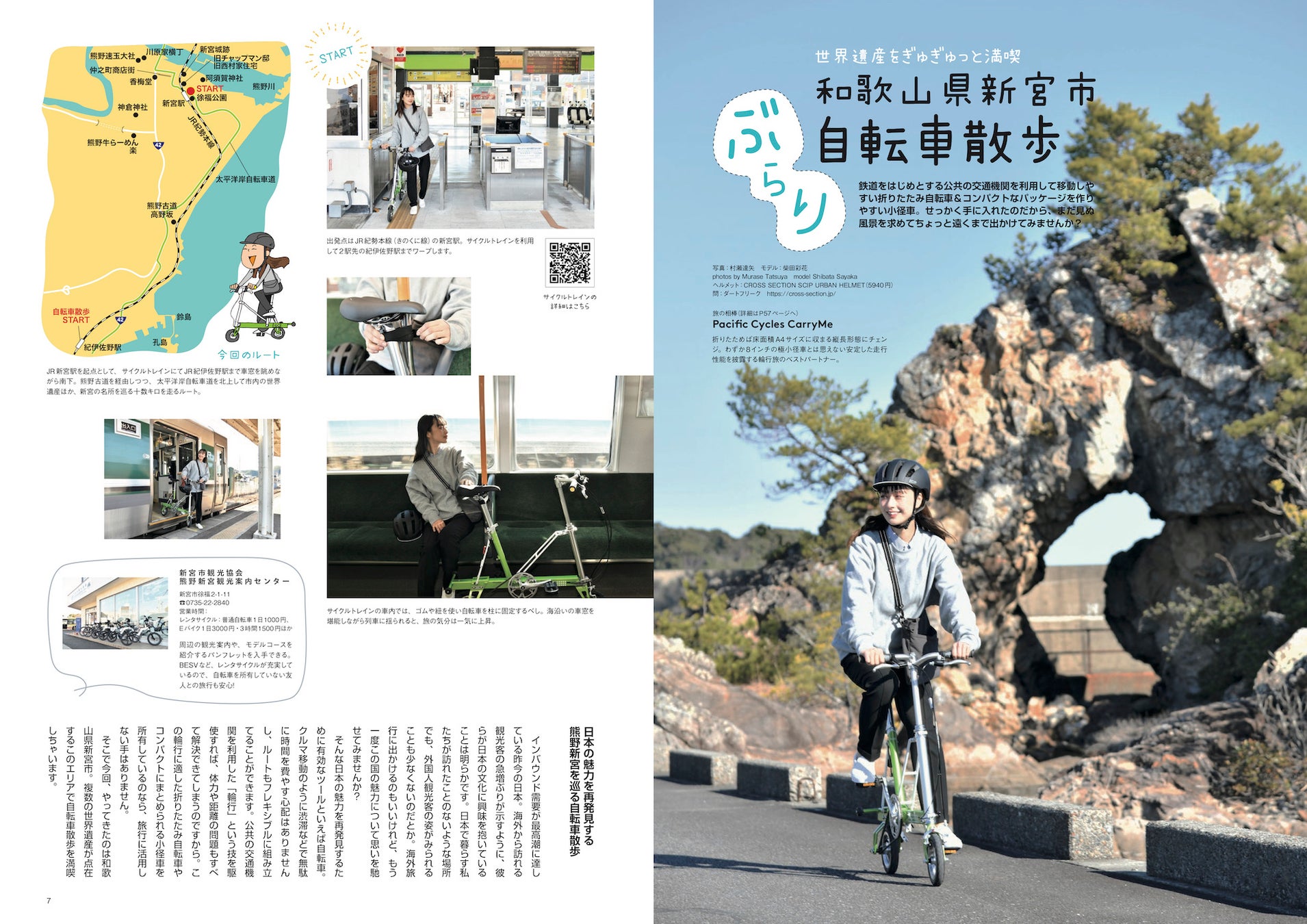 コンパクトな折りたたみ自転車は旅の相棒としての使い勝手も抜群です。和歌山県新宮市を舞台に、サイクルトレインを利用した世界遺産をめぐる自転車旅を紹介します。