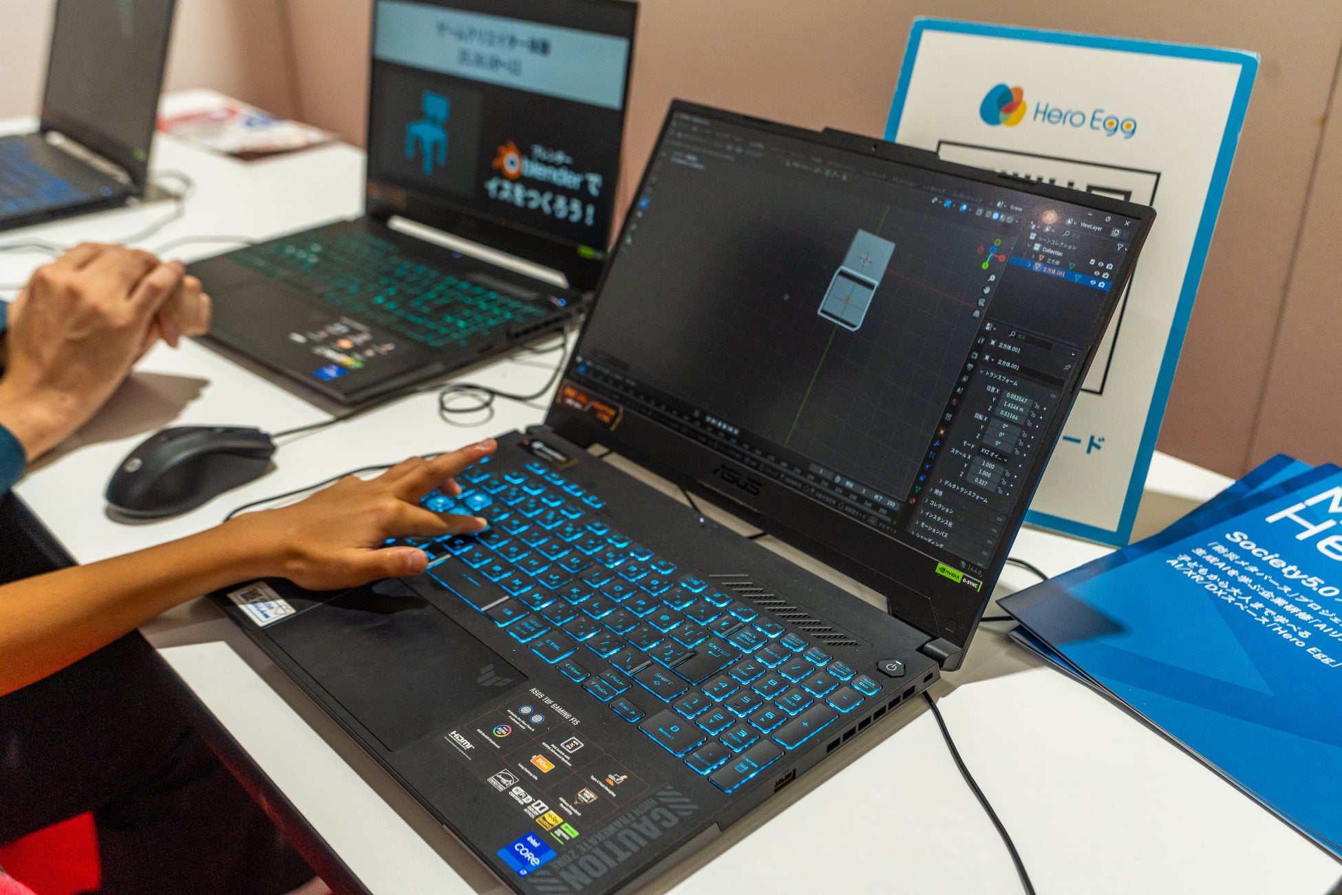 この知見を活かし、今回の体験ブースでは、ゲーム制作の入り口として世界的に広く利用されている3DCGモデリングソフト「Blender(ブレンダー)」を用いたワークショップを実施しました。目的は、単にゲームで遊ぶ側から「創る側」へ回る楽しさを体験してもらうことであり、子どもたちの創造力や論理的思考力を育むDX教育の一環として行いました。