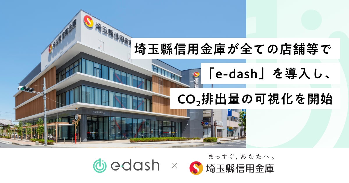 CO2排出量可視化・削減サービスプラットフォーム「e-dash」を提供するe-dash株式会社(本社:東京都港区、代表取締役社長:山崎冬馬、読み:イーダッシュ、以下「当社」)は、埼玉縣信用金庫(本部:埼玉県熊谷市、理事長:池田啓一)へサービスのご提供を開始したことを発表します。
