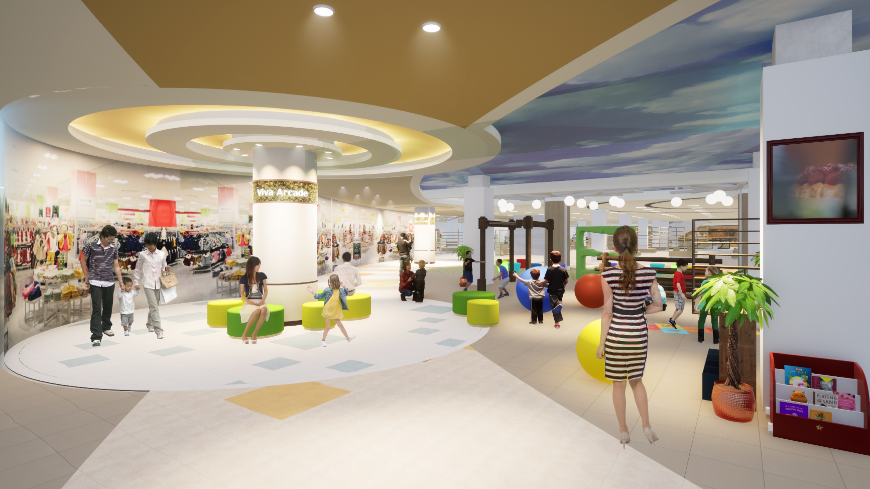 2階の直営売場では、子供服やおもちゃ、文房具などのお子様用品を集めた「kids fest」が誕生するほか、新しく「アカチャンホンポ」が入店します。近くにはお子様の遊び場「まんまるひろば」を備え、ゆっくりと三世代でお買い物をお楽しみいただける空間に生まれ変わります。