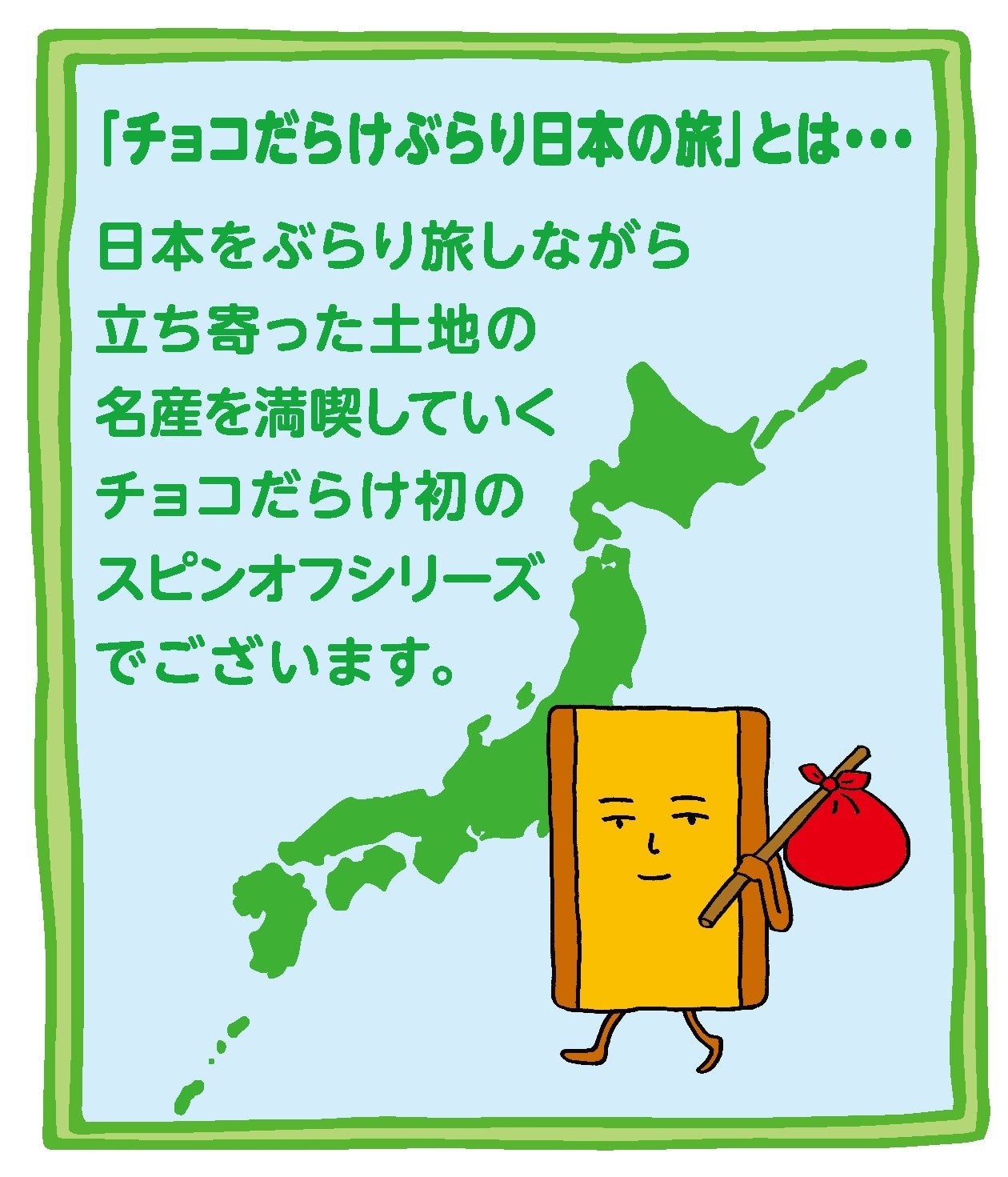 「カントリーマアムチョコまみれ」の姉妹品、「ホームパイチョコだらけ」より、初のスピンオフシリーズ「ホームパイチョコだらけぶらり日本の旅」を展開します。