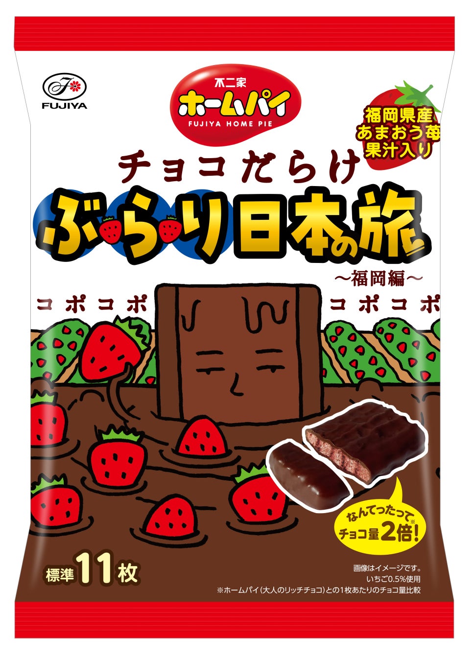 【不二家】「チョコだらけ」が日本の名産品とコラボ! 第1弾は福岡県産あまおう苺 「ホームパイチョコだらけぶらり日本の旅(福岡編)ミドルパック」