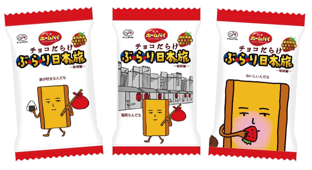 「ホームパイ」の商品キャラクター“イパムーホ”が、日本をぶらり旅しながら立ち寄った土地の名産を満喫していく、当シリーズ第1弾の旅先は「福岡県」。福岡県産あまおう苺の甘酸っぱさがクセになる期間限定のチョコだらけです。
