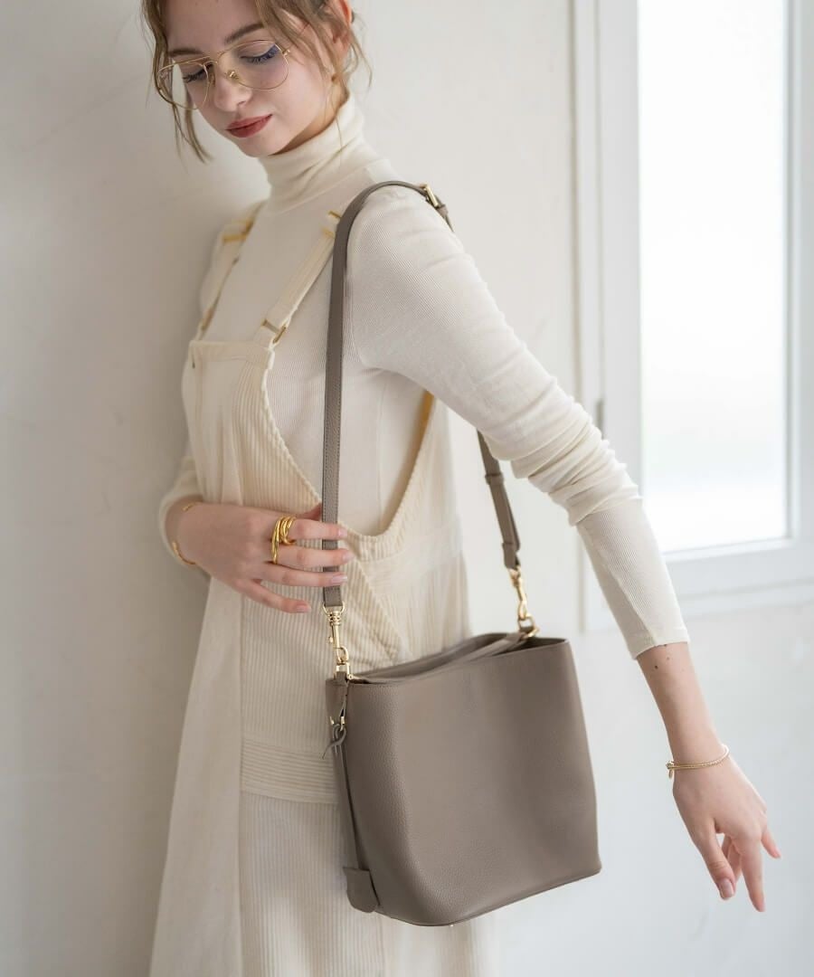 Akaneさんの「荷物がたくさん入り、かつエレガントな雰囲気で持てるバッグがあったらいいな」という想いから実現。パリの街で使い込まれたショルダーバッグを肩にかけて颯爽と歩く女性たちからインスピレーションを受け、毎日使えるサイズ感の素敵なショルダーバッグを目指しました。
