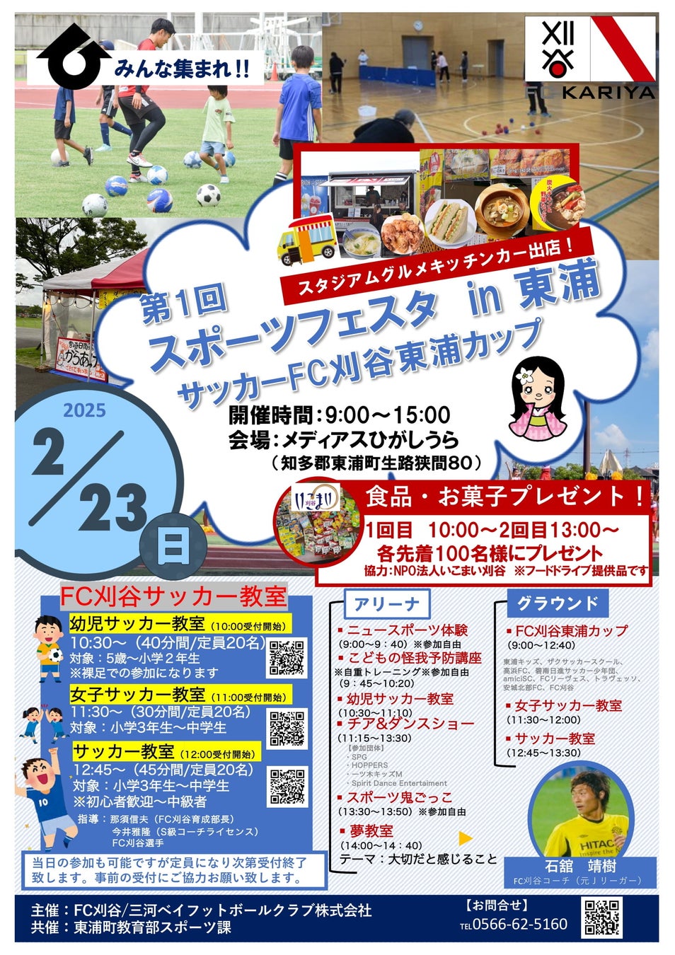 FC刈谷を運営する三河ベイフットボールクラブ株式会社は2/23(日)に愛知県知多郡東浦町にてスポーツフェスタを開催することを発表した。