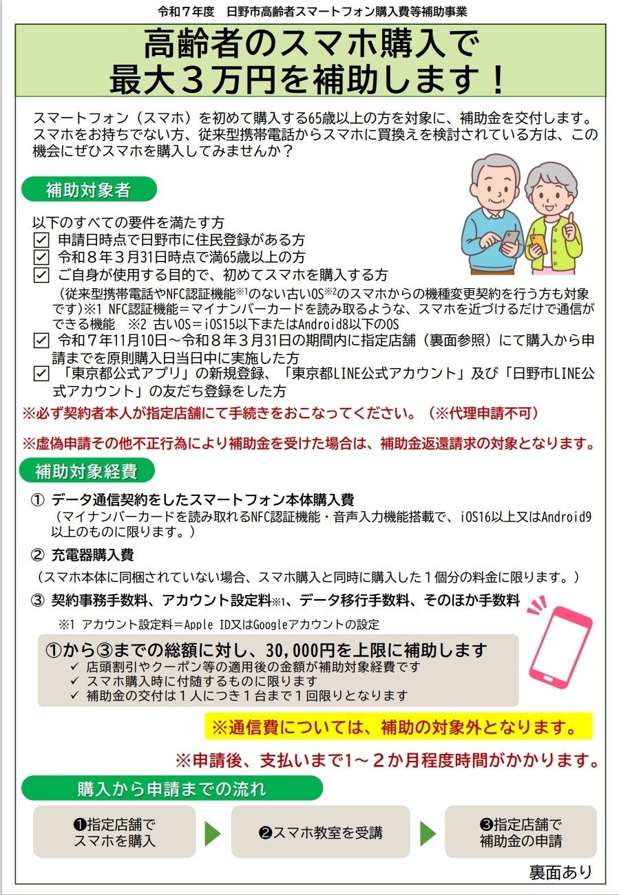 令和7年度日野市高齢者スマートフォン購入費等補助事業を実施