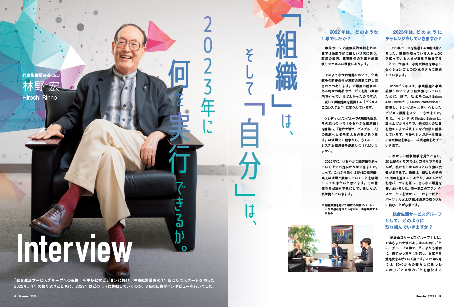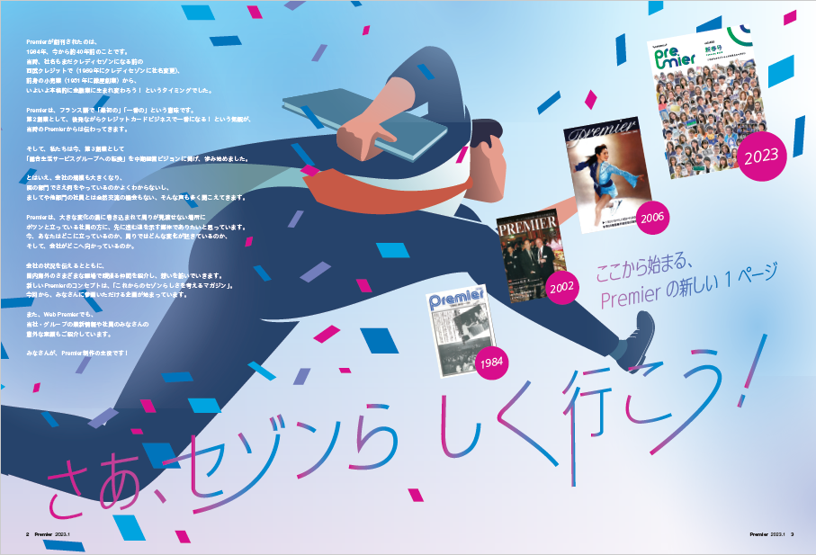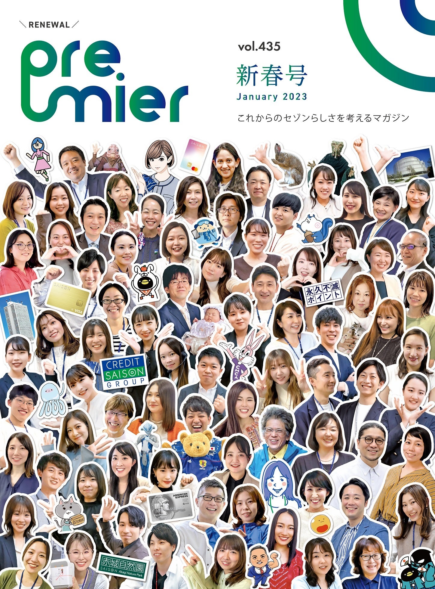 当社では、前身の小売業から金融業への業態変革期にあった1984年に社内報を創刊し、発刊を続けてまいりました。そして、現在は「総合生活サービスグループへの転換」を中期経営ビジョンに掲げ、第三創業実現に向けて、これまでのペイメント事業を中心とした企業体から金融サービスをコアに、グループ各社の総力を結集させたグループ企業体に生まれ変わろうとしています。そのように、新たなチャレンジをはじめたタイミングに合わせて、「これからのセゾンらしさ」を一人ひとりが考え、グループを含めた全社員で共有することを目的に、2022年12月発刊の『Premier』435号より、リニューアルを行いました。