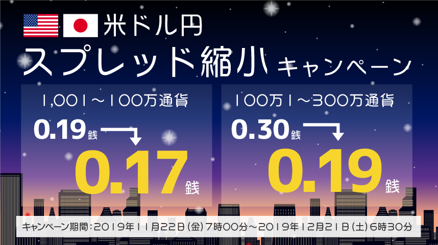 スプレッド縮小キャンペーン実施のお知らせ~更なる業界最狭水準のスプレッドをご提供~