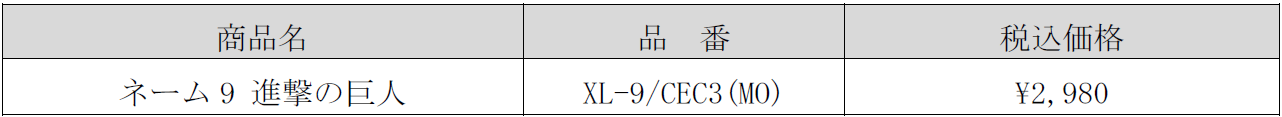 シヤチハタ株式会社※(代表取締役社長 舟橋 正剛 本社:愛知県名古屋市)は、この度、シヤチハタオフィシャルショップにて、進撃の巨人×シヤチハタがコラボした「ネーム9」を2022年8月26日(金)から9月25日(日)の期間で予約販売します。