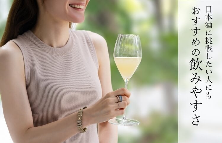 炭酸の爽快感によって甘さが後を引かず、フレッシュな桃を食べた後のような飲み口。アルコール度数は日本酒は通常15度前後ですが、ハイボールや酎ハイに近い8度で仕上げました。最初の一杯や寝る前のリラックスタイムなど気軽にお楽しみいただけます。