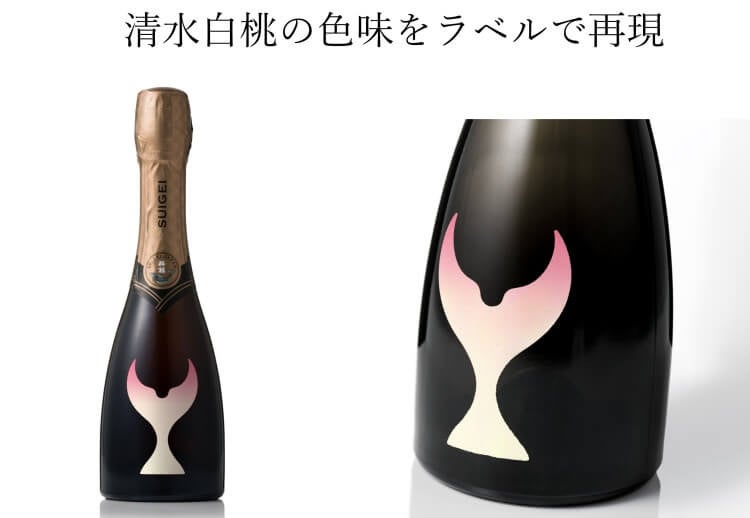 鯨の尾ひれを象った「酔鯨」ボトルのトレードマーク。今回は乳白色にほんのりピンクが入った清水白桃の色味をグラデーションで表現。