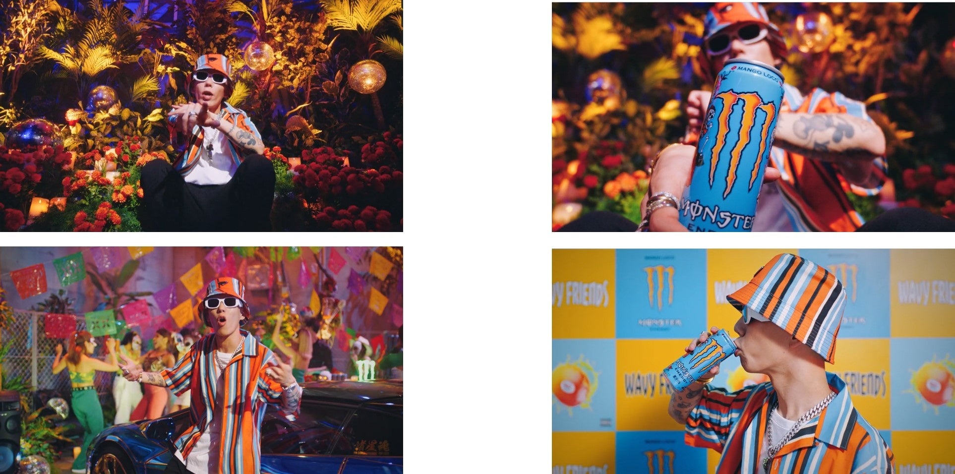 本楽曲はトランペットやギターを使った南国感のあるエキゾチックなメロディーが印象的なバンガーとなっており、コラボMVも、ガイコツの仮面を手に『モンスター マンゴーロコ』を飲んで踊るパーティーシーンやマリーゴールドに彩られた場所でJP THE WAVYがリップするシーンなど、『モンスター マンゴーロコ』の世界観が存分に表現された内容となっています。なお、フルバージョンのMVは近日公開予定です。