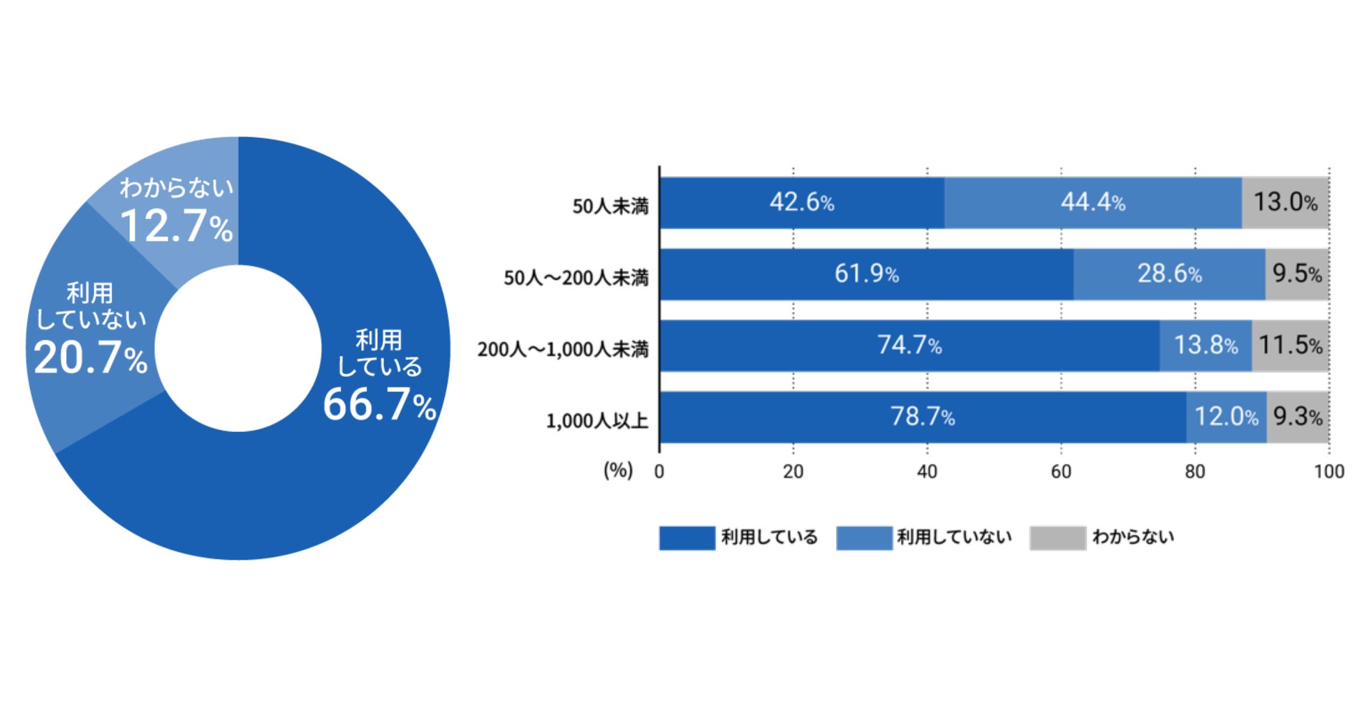 東海地方でも6割以上の企業がSaaS(Software as a Service)を導入していることがわかりました。企業の規模別では、SaaSの導入状況は概ね従業員数に比例する結果となりました。