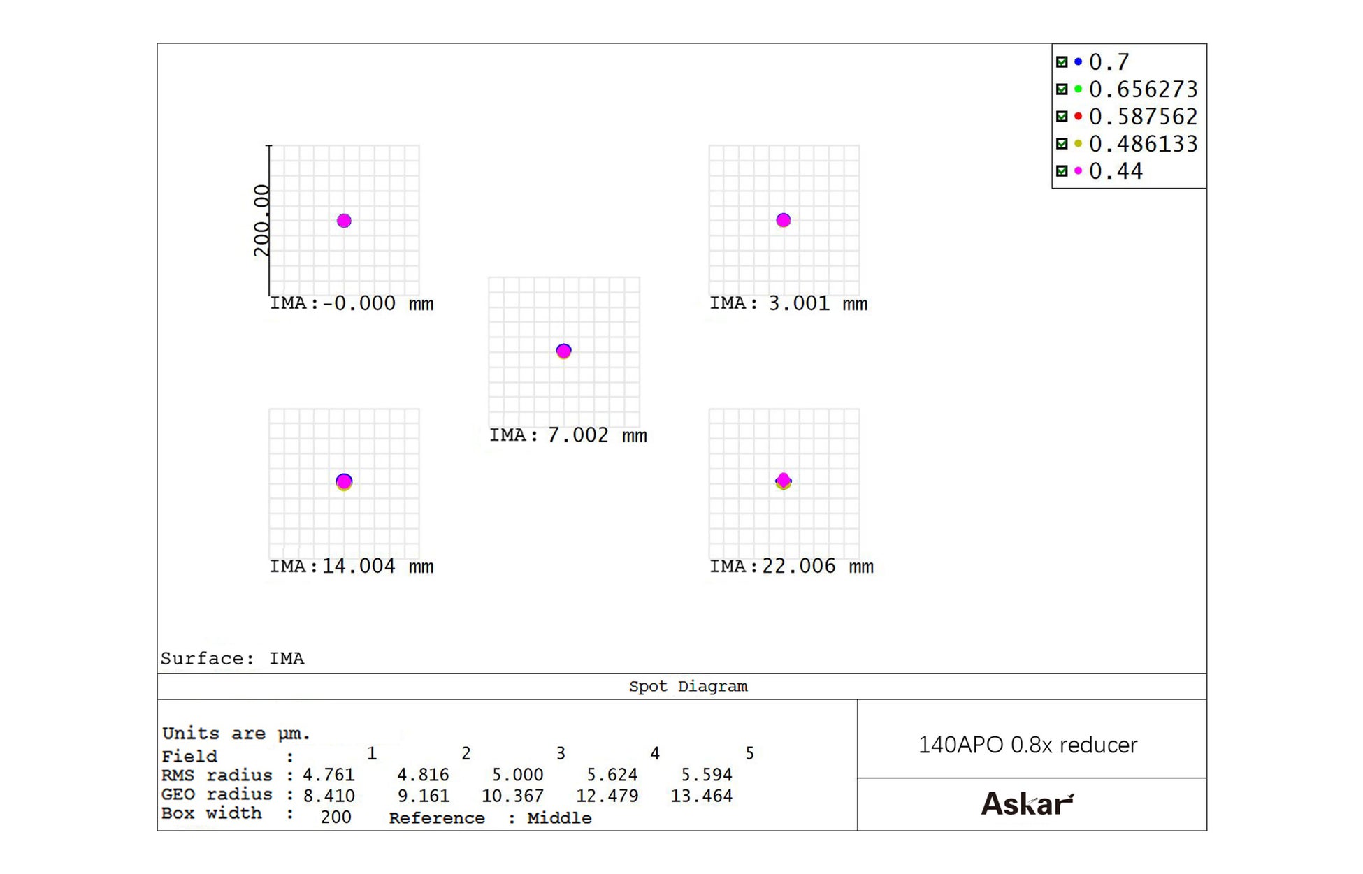 ・140APO専用の補正レンズです。140APO鏡筒に取り付けることで、焦点距離を0.8倍の784mm(F5.6)に短縮し、フルサイズのイメージセンサーに対応したφ44mmイメージサークルを得ることが可能です。