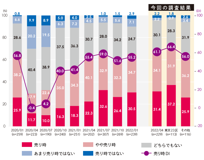 ※売り時DI(diffusion index)の算出は、(今マンションは「売り時」回答割合+「やや売り時」回答割合)-(今マンションは「あまり売り時ではない」回答割合+「売り時ではない」回答割合)で算出