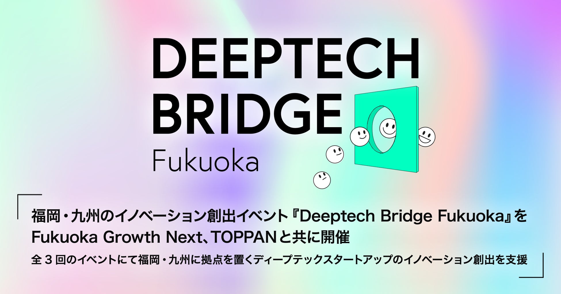 Creww株式会社(代表取締役:伊地知 天、以下「Creww(クルー)」)は、福岡・九州に拠点を置くディープテックスタートアップのイノベーション創出支援を目的としたイベント『Deeptech Bridge Fukuoka』を、福岡市のスタートアップ支援施設「Fukuoka Growth Next」と、TOPPAN株式会社(代表取締役社長:大矢 諭)と共に開催することをお知らせします。