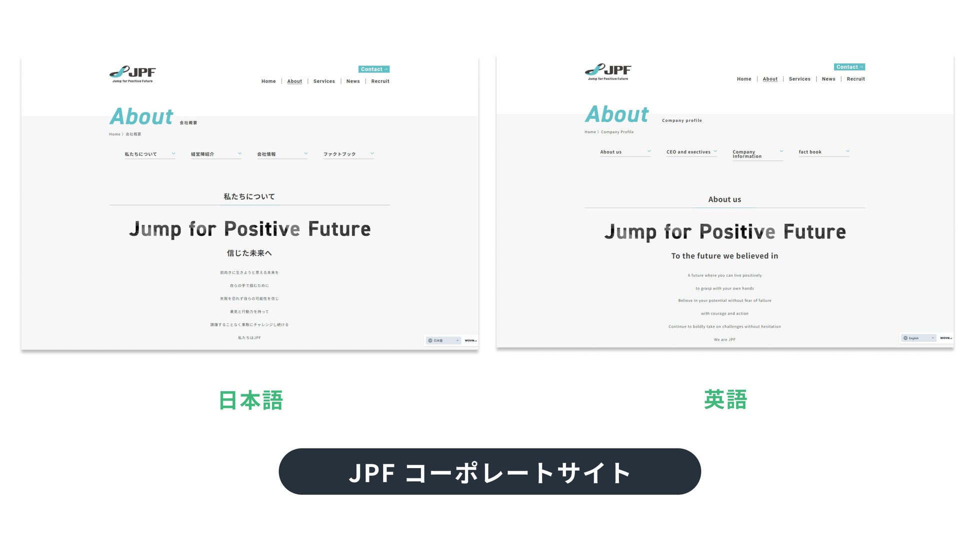JPF のコーポレートサイトを日本語と英語で公開しています。