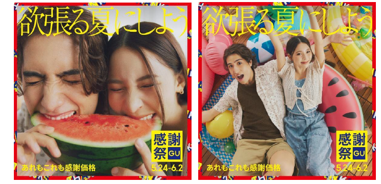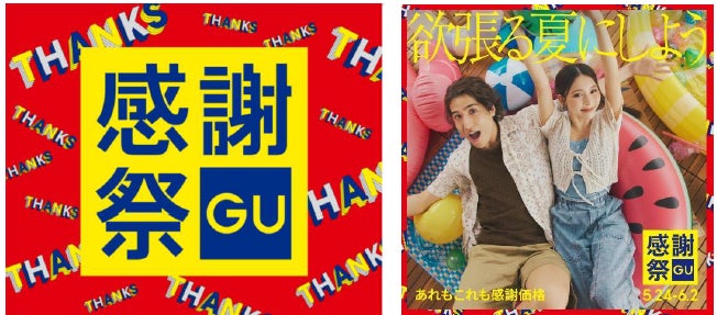 感謝祭期間中は、すべてのお客様がお得な価格でお買い物をお楽しみいただけるほか、ジーユーアプリ会員向けに、感謝祭後からご使用いただけるクーポンを配布いたします。また、感謝祭に先駆け、人気タレントのkemioさんとミチさん出演の感謝祭特別WEB CMの公開や、感謝祭特別企画のLIVE STATION配信など、感謝祭を楽しんでいただく企画を豊富にご用意しています。夏本番を迎える前に、夏のトレンドアイテムをお得に、楽しくお買い求めいただける機会になりますので、ぜひお見逃しなく!