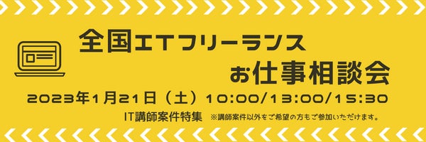 バーチャル会場で全国の営業担当に直接相談できる全国ITフリーランスお仕事相談会 -IT講師案件特集-2023年1月21日(土)開催