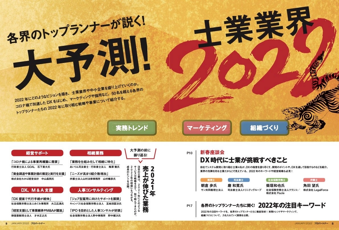 各界のトップランナーが説く!大予測、士業業界2022! 月刊プロパートナー1月号発売
